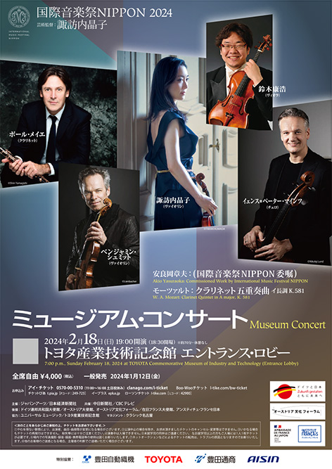 『ミュージアム・コンサート』(2月18日 トヨタ産業技術記念館 エントランス・ロビー)、『諏訪内晶子プロデュース 室内楽プロジェクト~Akiko Plays CLASSIC & MODERN with Friends Akiko Plays CLASSIC with Friends ~ウィーン1800~』(2月21日 紀尾井ホール)の曲目を更新いたしました。